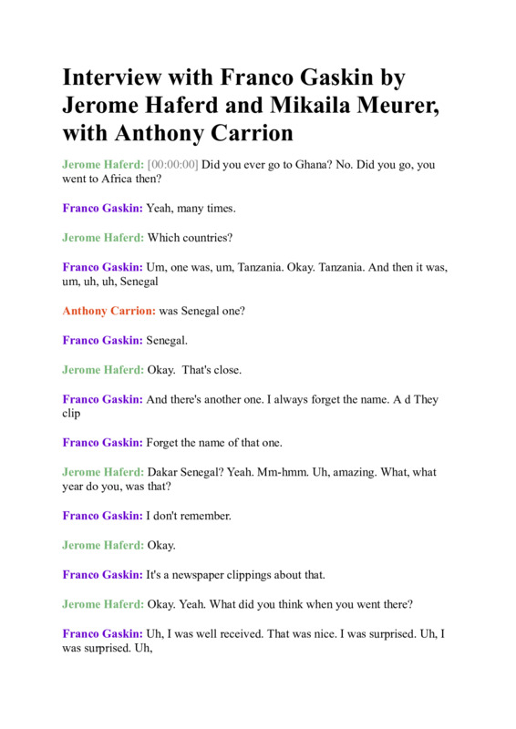 Jerome Haferd and Mikaila Meurer, with Anthony Carrion, interview Franco the Great AKA Franco Gaskin.
